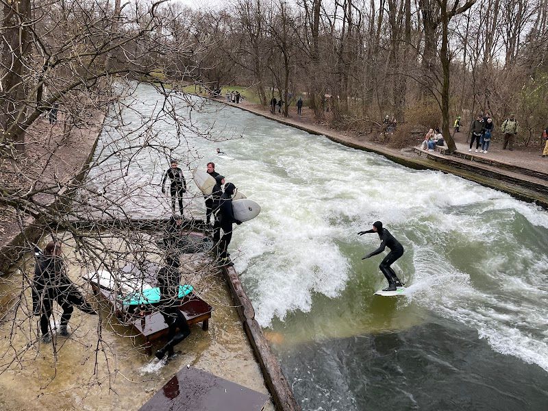 Eisbach Surfers is in the Schwabing & Englischer Garten neighborhood of Munich. The address is Prinzregentenstraße, 80538 München, Germany. The area is well-served by metro.